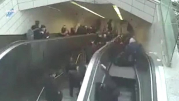 วินาทีที่ผู้เคราะห์ร้ายได้ถูกบันไดเลื่อนดูดลงไป