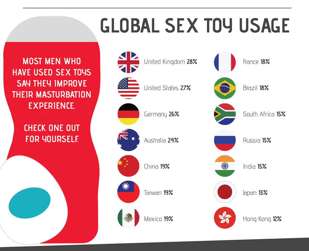 บริษัทเซ็กส์ทอยชื่อดัง TENGA ทำแบบสำรวจเกี่ยวกับพฤติกรรมการสำเร็จความใคร่ด้วยตัวเองของคน 18 ประเทศทั่วโลก พบผู้ตอบแบบสำรวจมากกว่า 2 ใน 3 หรือ 78% ต่างเคยช่วยตัวเอง โดยเพศชายเกาหลีใต้ UK และญี่ปุ่นช่วยตัวเองเยอะสุด 96% ขณะที่เพศหญิงทุกประเทศมีสัดส่วนช่วยตัวเองน้อยกว่าผู้ชาย