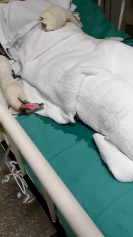สภาพลูกสาวของเธออยู่ในสภาพมีร่องรอยการเผาไหม้ ทั้งแขน และ ขา และอีกหลายจุดที่บริเวณลำตัว และ ผมของเธอก็โดนไฟไหม้ไปเช่นกัน