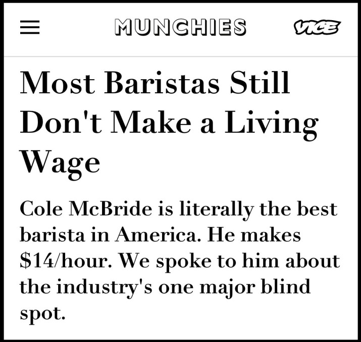 1. เพราะคิดว่าบาริสต้านั้นรวยอยู่แล้ว แม้แต่บาริสต้าที่เก่งที่สุดในอเมริกายังได้รับเงินค่าจ้างตั้งเกือบ 500 บาทต่อชั่วโมง