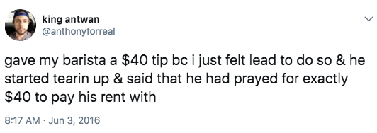 15. ฉะนั้นแล้วเก็บทิปของคุณไว้เถอะ พวกเค้าไม่ได้ต้องการมันแม้แต่น้อย นี่ขนาดลูกค้าให้ทิปแค่ 1300 กว่าบาทเองนะ ถึงขนาดทำให้พนักงานขอบคุณทั้งน้ำตานองหน้าบอกลับมาว่าแค่นี้เอามาจ่ายค่าเช่าบ้านของผมได้เลย