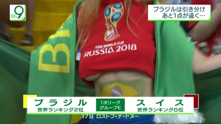 ตากล้องตาดีจับภาพกองเชียร์สาวบราซิลได้คนนึง จากเกมส์ระหว่าง บราซิล กับ สวิตเซอร์แลนด์ สิ่งที่ทำให้เธอคนนี้โดดเด่นเห็นจะเป็นเสื้อที่ใส่มามันอาจจะตัวเล็กไปซักหน่อย รายการทีวีเลยจับไปขยายประเด็น ซูมแล้วซูมอีก จนให้เราได้เห็นเต็มๆ ตา