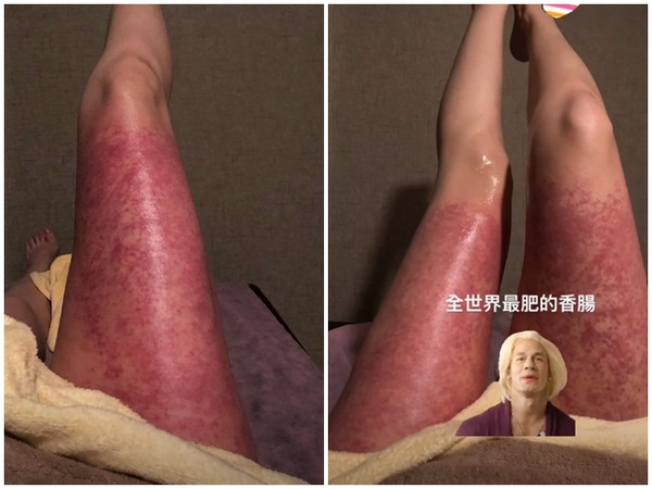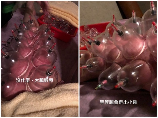 ดูรูปที่เธอโพสต์ผ่านๆ นี่ มันเอเลี่ยนชัดๆ น่าสยองสุดๆ เหมือนมีหนอนอยู่ที่ขาเต็มไปหมดเลย แต่พอดูแบบตั้งใจดูใกล้ๆ ก็จะใจชื้นขึ้นมาหน่อย ว่ามันเป็นการรักษาด้วยถ้วยสุญญากาศนั่นเอง