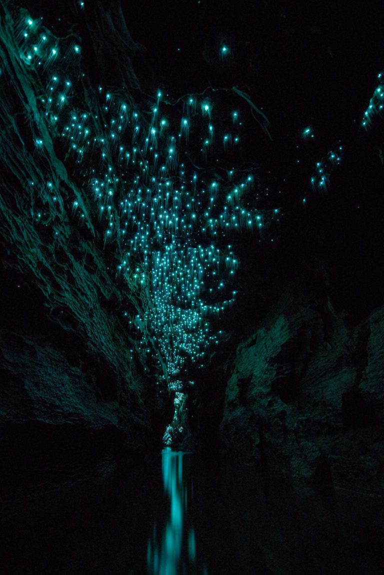 สำหรับถ้ำหนอนเรืองแสงแห่งนี้ อยู่ในเขตเมือง Waitomo บนเกาะเหนือของประเทศนิวซีแลนด์ โดยภายในเป็นถ้ำที่มีหินงอกหินย้อยออกมามากมาย แต่ความพิเศษของมันมีมากกว่านั้น… เพื่อนๆ ลองดูตรงบริเวณผนังสิ…เต็มไปด้วยแสงเปล่งประกายระยิบระยับราวกับอัญมณีล้ำค่า ที่งดงามตามมากจริงๆ ซึ่งสิ่งที่ทำให้เกิดแสงสวยๆ เหล่านั้นก็คือ “เจ้าหนอนเรืองแสง” นั่นเอง