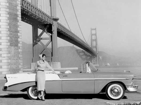 รูปถ่าย สีดำ และ สีขาว ของผู้หญิง กับรถยนต์