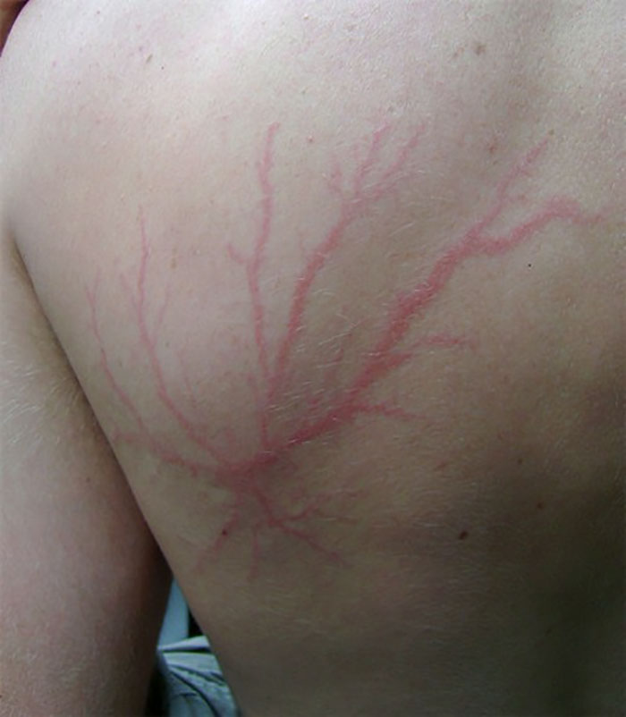 อัตราของฟ้าผ่าต่อปี คือ ประมาณ 1 ใน 300,000 ครั้ง แม้ว่าประมาณ 90 % ของผู้ที่หลงเหลือมีชีวิตอยุ่รอด แผลจากการถูกฟ้าผ่าใส่ตัวเขา ดูจะเหมือนกับรอยสัก Lichtenberg แต่ไม่ใช่ทั้งหมด ในสนามหญ้าก็มี
