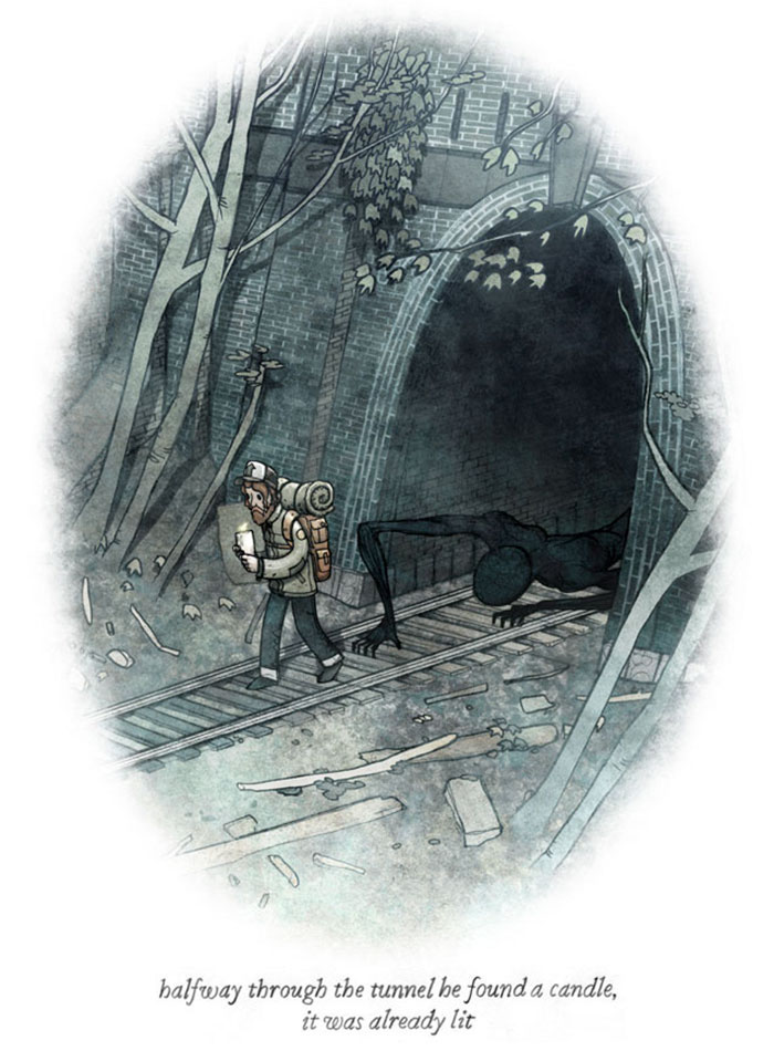 นักประพันธุ์ชาวไอรีสชื่อ Brian Coldrick นักวาดการ์ตูนต่อเนื่อง ในหนังสือ Behind You : One- Shot Horror Stories ของเขา ภาพแต่ละภาพ เป็นภาพประกอบที่สวยงาม และ หลอน ซึ้งแสดงให้เห็นถึง มอนสเตอร์ ที่ซ่อนตัวอยู่ในอ้อมแขน กับ คำอธิบายของภาพหนึ่งประโยค ที่มีอารมณ์ขันมืดๆ