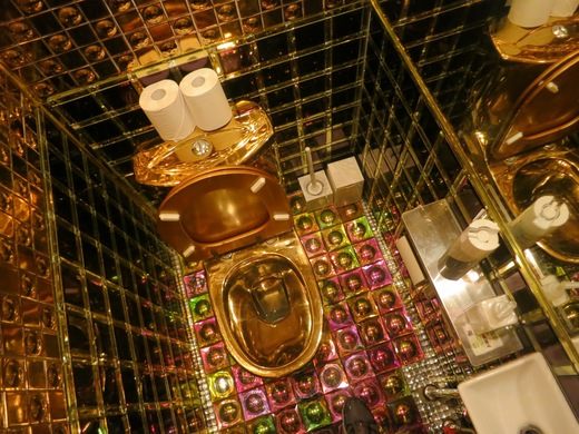 ถ้าใครมีโอกาสได้ไปสัมผัสบรรยากาศร้านอาหารแห่งนี้แล้วอย่าลืมไปเข้าห้องน้ำของร้านเค้าด้วยล่ะ จะได้รู้ว่าการทำธุระส่วนตัวในห้องน้ำทองคำเป็นยังไง