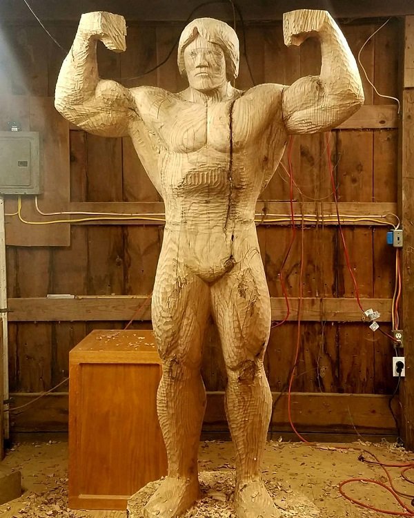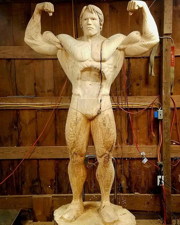 James O'Neal นักประติมากรรมได้แกะสลักลำต้นไม้เก๋าอันหนึ่ง เพื่อสร้างเป็นหุ่นไม้ของ อาร์โนน์ ซเน็กไวเกอร์ พระเอกหนังนักกล้ามคนดัง เรามาดูฝีมือของเจมส์ กันนะว่าเขาจะทำได้เหมือนคนจริงขนาดไหนนะครับ