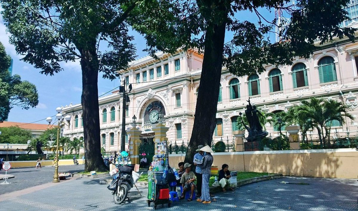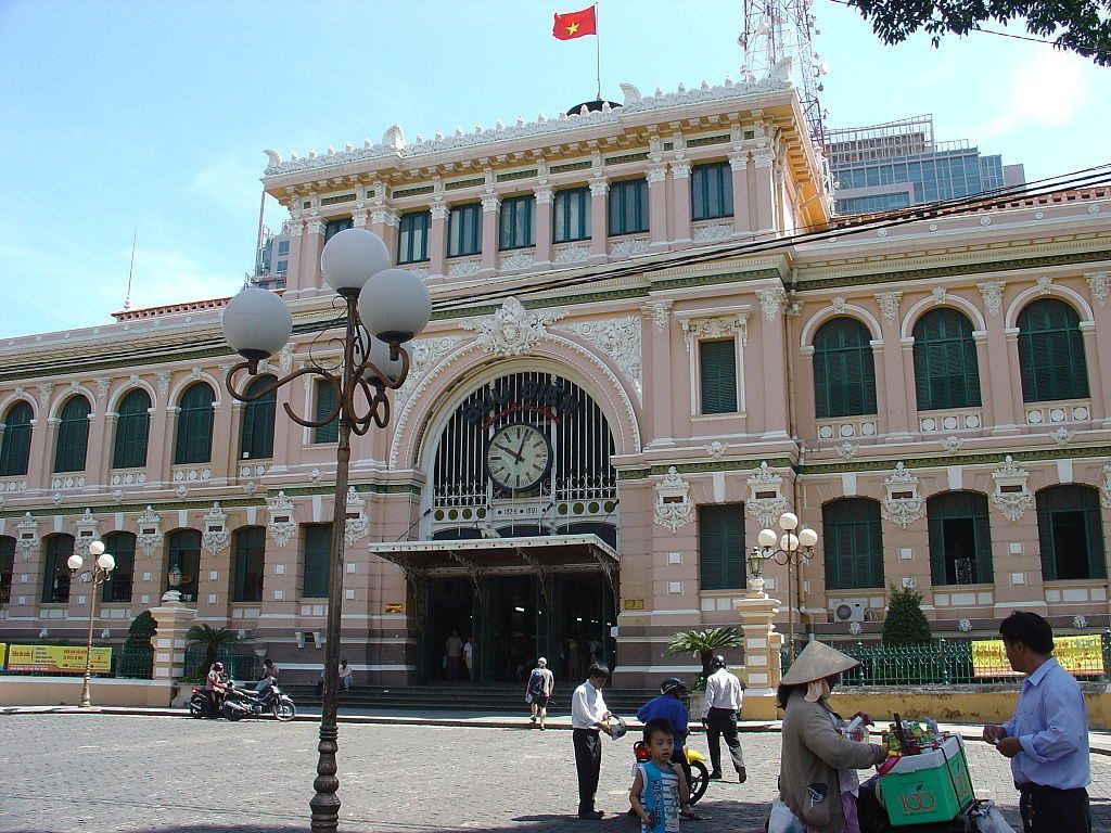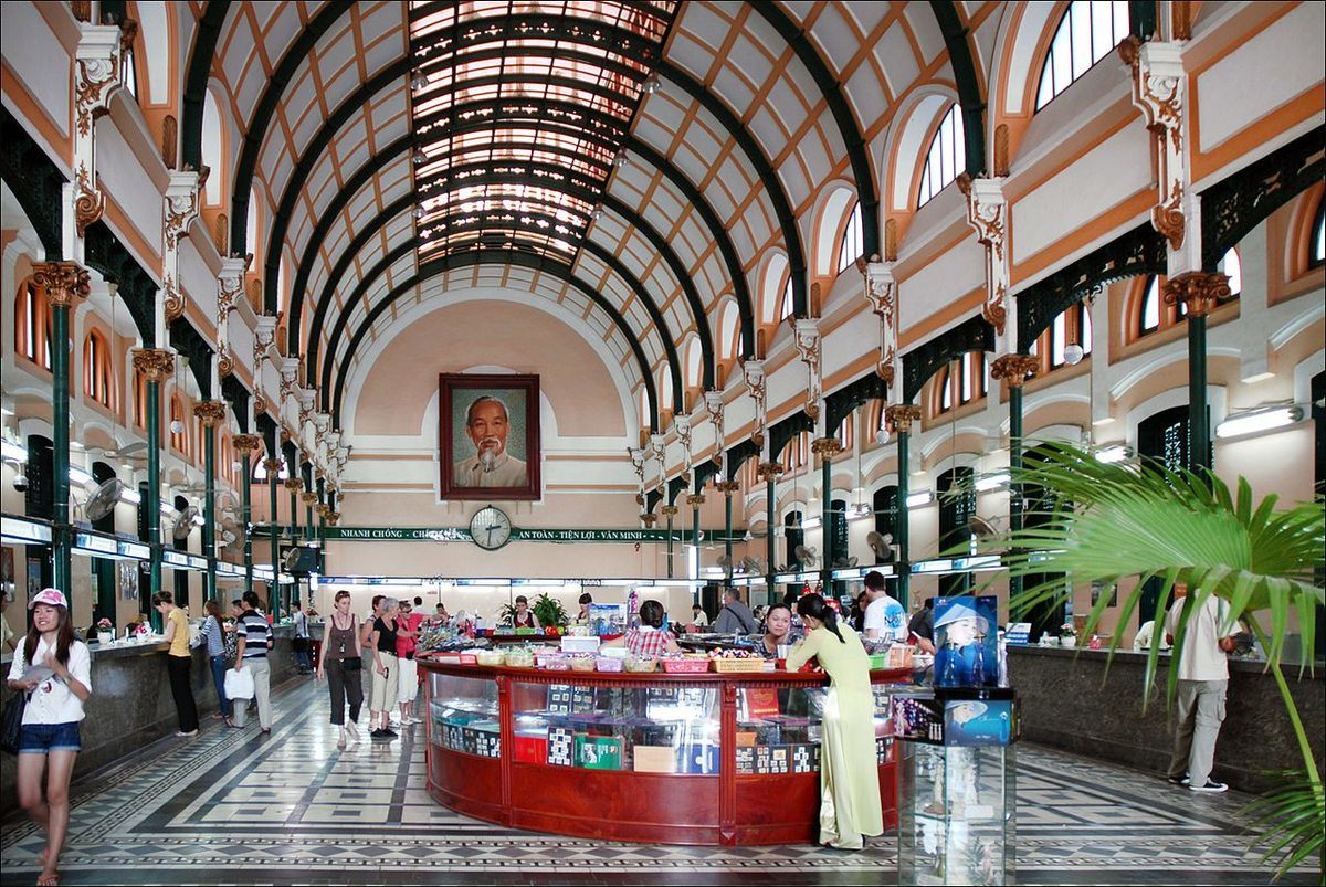 Saigon Central Posoffice ถูกสร้างขึ้นในยุคอาณานิคมของฝรั่งเศส สร้างขึ้นในปีพศ 2429 - 2434 สร้างขึ้นจาก โครงเหล็กหล่อสำเร็จรูป เพดานโค้งสูงชัน และ หน้าต่างโค้ง.