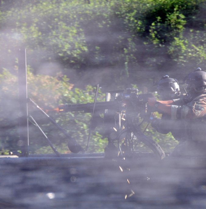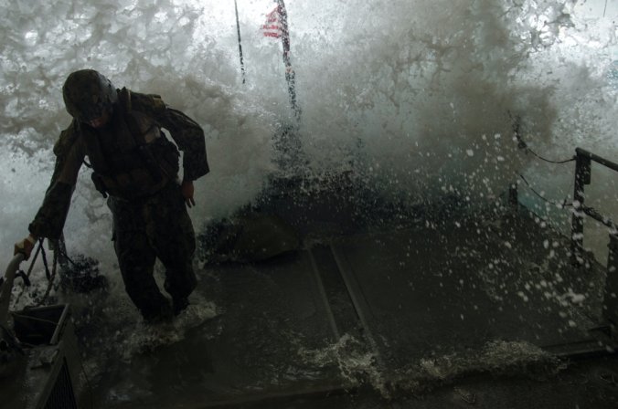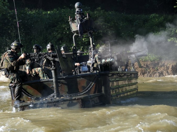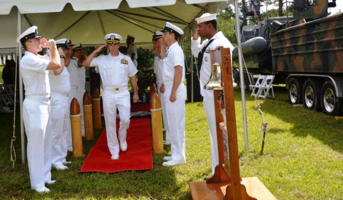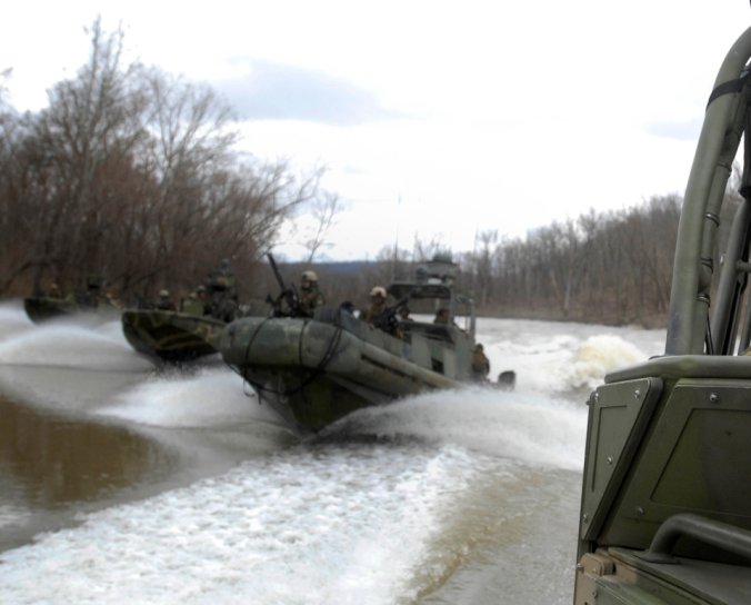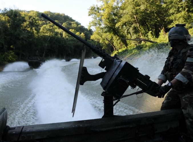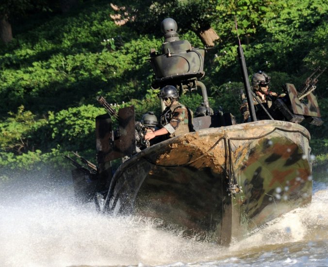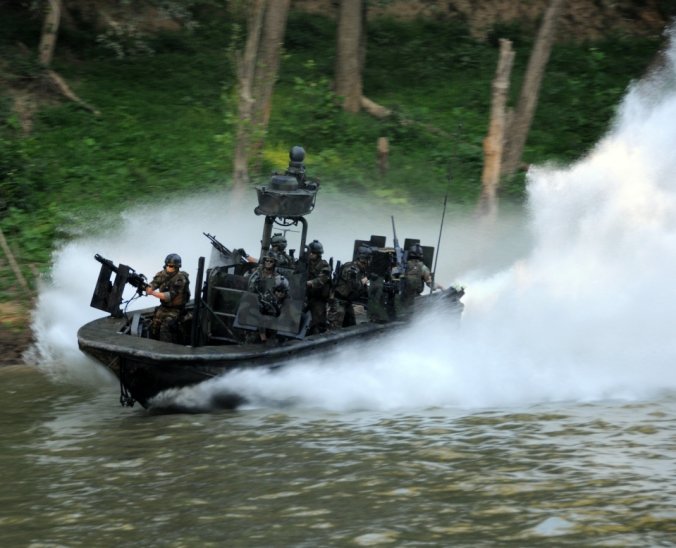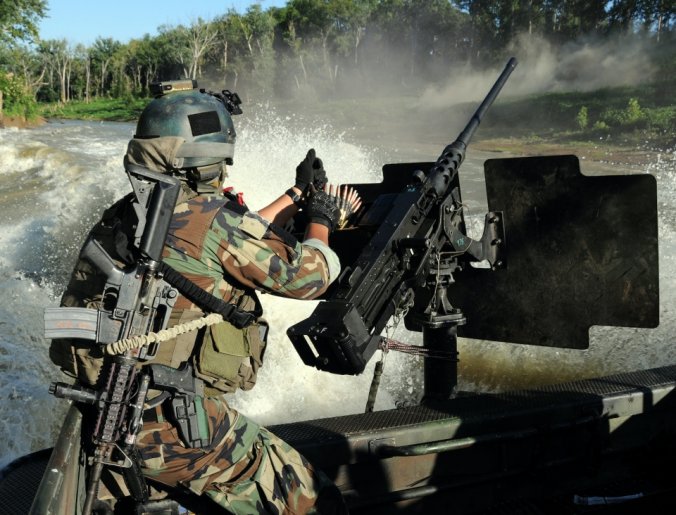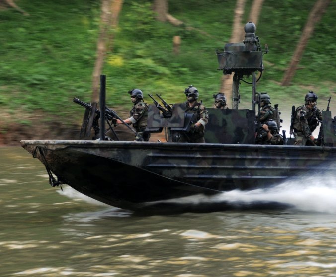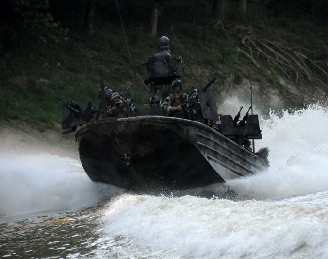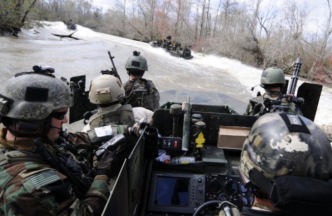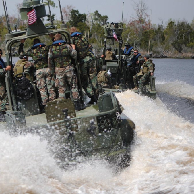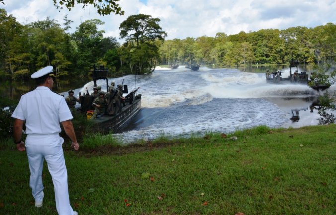 เรือรบพิเศษทีม - 22 Commander Gary Ryan's เตรียมพร้อมที่จะเดินทางผ่าน Special Operations Craft Riverine ในประเพณีสงครามนาวีพิเศษในภาคใต้ มลรัฐมิสซิสซิปปี ของประเทศ สหรัฐอเมริกา