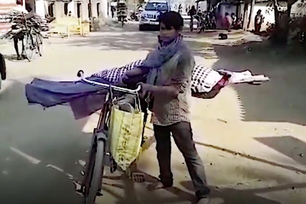 Barefoot orphan carries dead mum on bike after neighbours refuse to help with burial