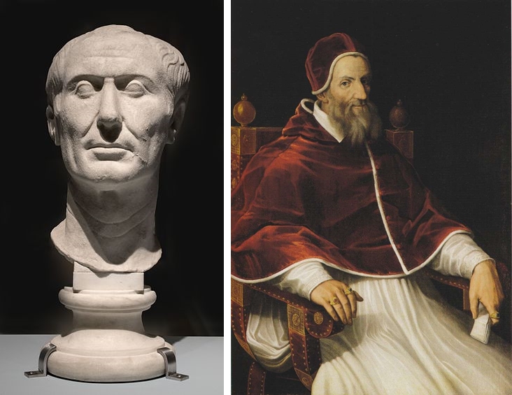 จูเลียส ซีซาร์ (ซ้าย) และสมเด็จพระสันตะปาปาเกรโกรีที่ 13 (ขวา) บุคคลที่ถูกนำชื่อไปตั้งเป็นชื่อปฏิทิน