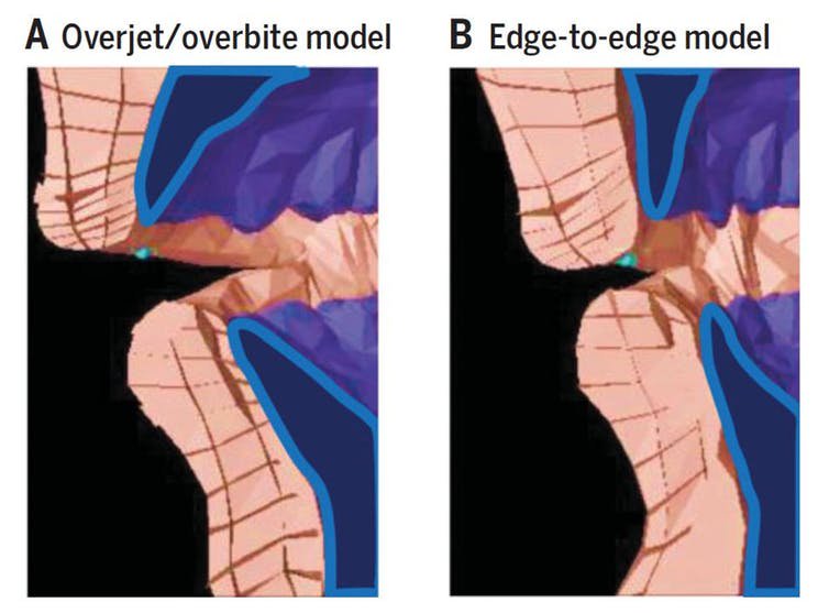 นั่นเพราะเมื่อนักวิทยาศาสตร์ทดลองสร้างแบบจำลองของศีรษะมนุษย์ในคอมพิวเตอร์ดู พวกเขาก็พบว่าการที่คนเรามีฟันแบบ Overbite นั้น จะทำให้เราออกเสียงที่ต้องอาศัยริมฝีปากล่างและฟันบน หรือ “Labiodental” ได้ง่ายกว่าการมีฟันแบบเสมอกันถึง 29% เลย การค้นพบนี้ทำให้นักวิทยาศาสตร์เชื่อว่าในสมัยก่อนเสียง /f/ และ /v/ น่าจะไม่เป็นที่นิยมหรือไม่มีการใช้งานเลยในสมัยก่อน และเพิ่งจะมามีการใช้งานในช่วงที่ฟันของเราเปลี่ยนแปลงไปแล้วเท่านั้น