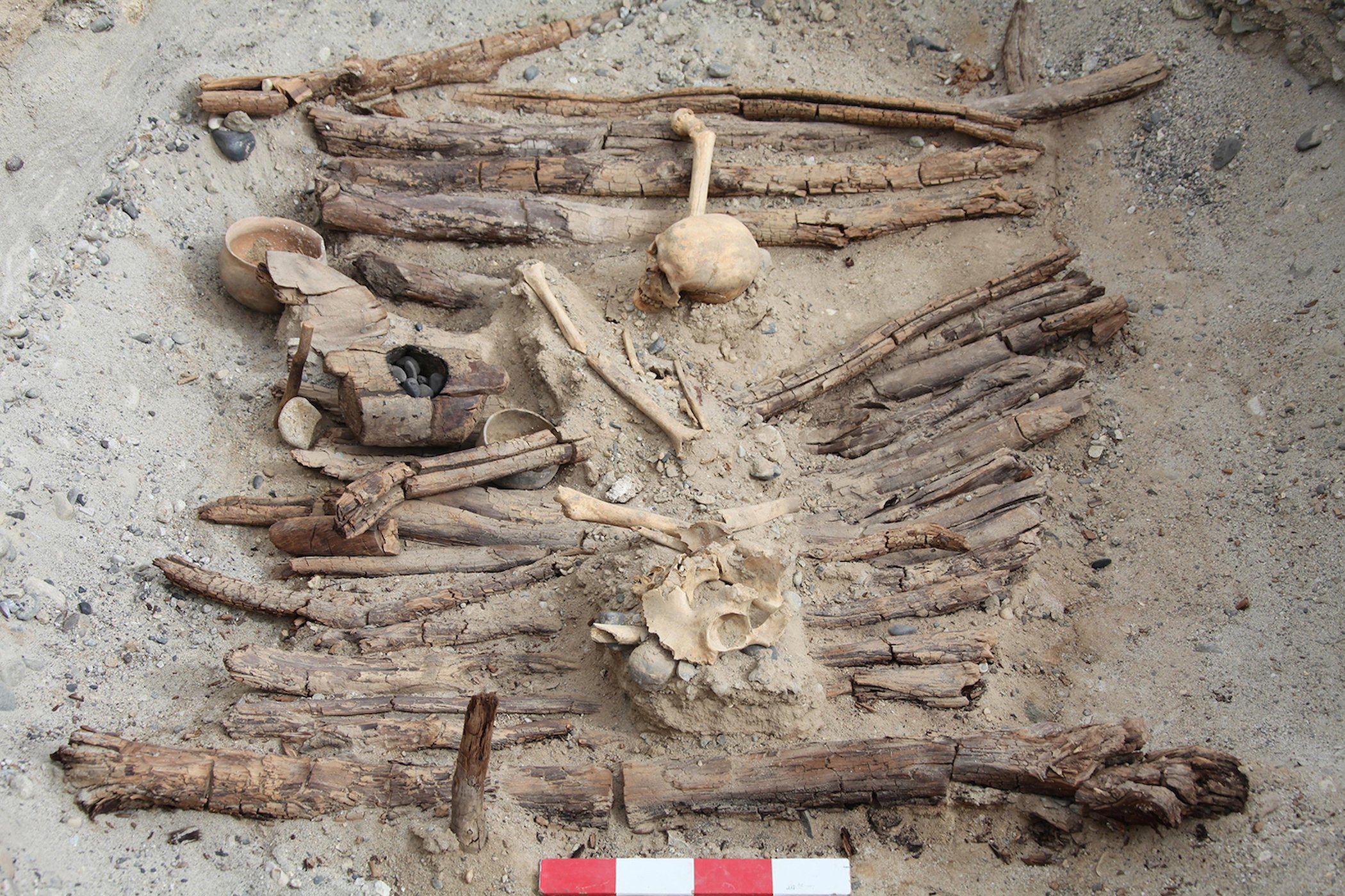 โครงกระดูกและวัตถุโบราณที่ถูกค้นพบในการขุดค้นครั้งนี้