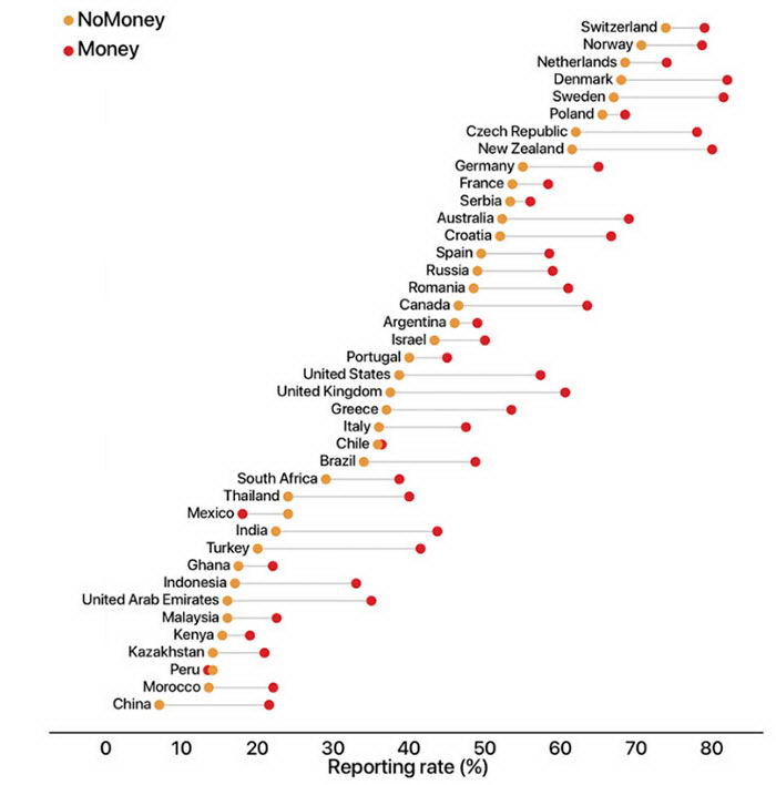 แต่ประเทศอย่างเม็กซิโกและเปรู ถือเป็นประเทศที่น่าสนใจ เพราะกระเป๋าสตางค์ที่มีเงิน กลับถูกส่งคืนเจ้าของน้อยกว่า นี่อาจสะท้อนให้เราได้เห็นถึงอะไรบางอย่าง
