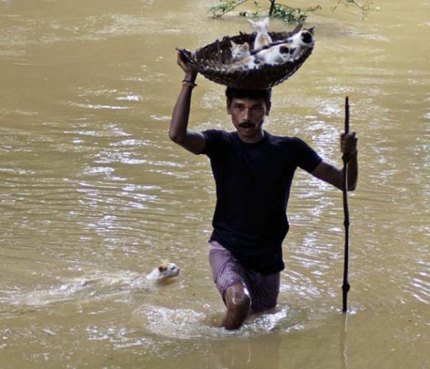 ช่วยเหลือลูกแมวข้ามแม่น้ำที่อินเดีย