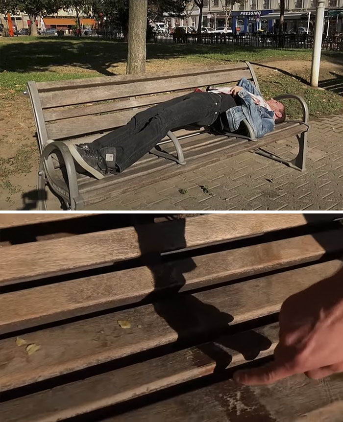 5. นี่คือม้านั่งที่ป้องกันคนไร้บ้านมานอน แต่ชายคนนี้เอาที่กั้นออก จนต้องจบลงด้วยการถูกจับขึ้นศาล