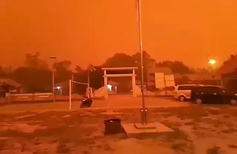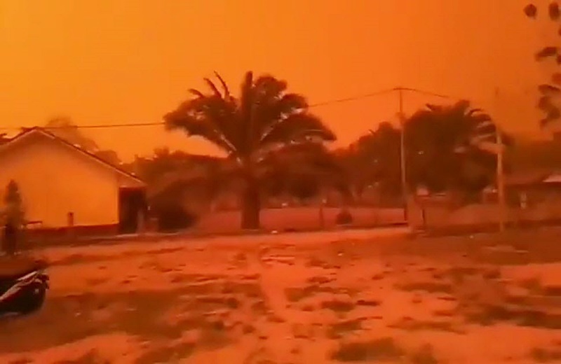 เปิดคลิปสะพรึง ท้องฟ้าสีแดงที่อินโดนีเซีย เนื่องจากควันไฟป่า สะสมหนาแน่น ทำท้องฟ้าทั้งเมืองแดงฉาน ราวกับสีเลือด ชาวเน็ตแห่แชร์คลิป ตั้งข้อสงสัย นี่มันโลกหรือดาวอังคาร ?!