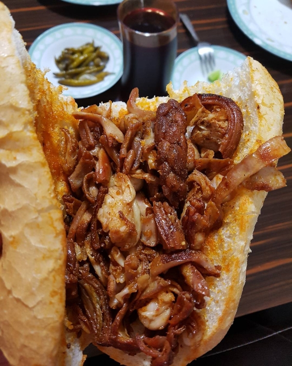 ตุรกี ลำไส้แกะย่างกับมะเขือเทศสับและพริก
