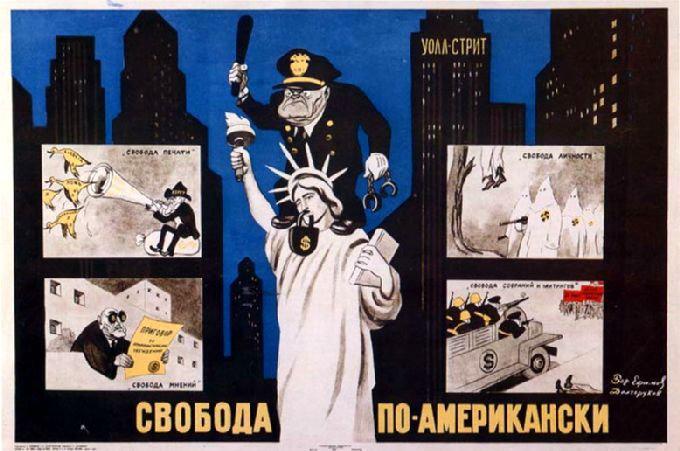 นี่คือ โปสเตอร์ของโซเวืยตต่อต้านอเมริกาและทุนนิยม