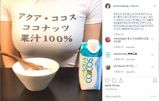 Kuma Cooking YouTuber หน้าใหม่ที่เพิ่งมีชาเเนลของตัวเองอัพโหลดลงใน Youtube เมื่อสิงหาคมที่ผ่านมาเป็นครั้งเเรก จุดเด่นของรายการอยู่ที่วิธีการทำอาหารที่เธอพรีเซนต์โดยไม่เน้นให้เห็นใบหน้า เเต่เน้นไปที่หน้าอกไซส์มหึมาที่อยู่ภายใต้เสื้อทีเชิร์ตสีขาว พร้อมข้อความโฆษณาจากเหล่าสปอนเซอร์ที่สนับสนุนรายการเธอ