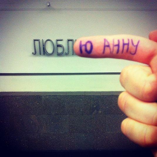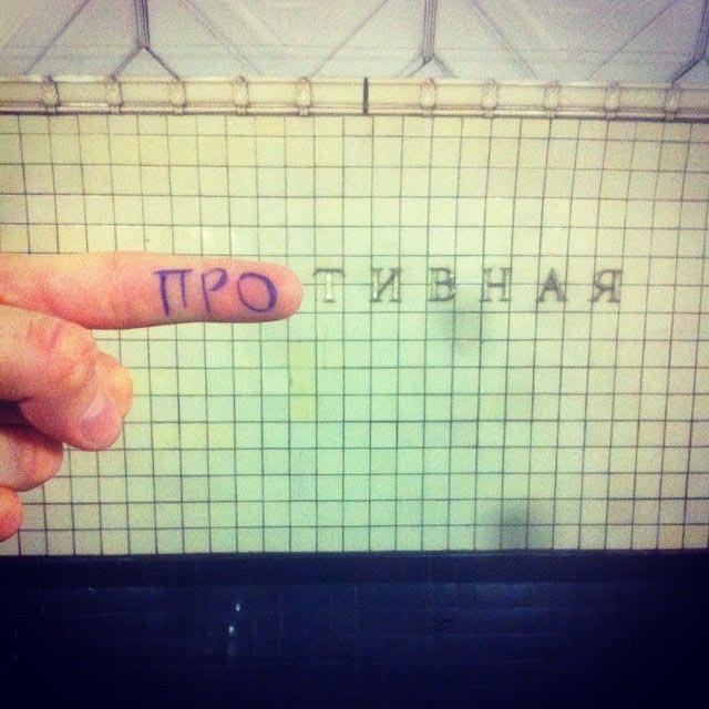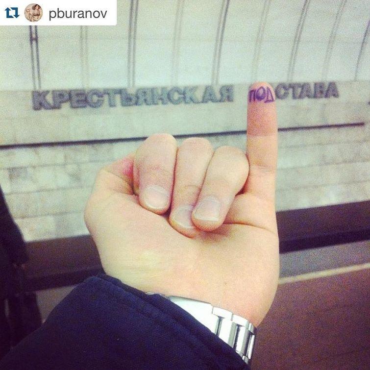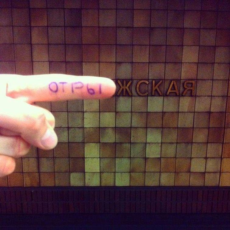 จากความคิดของ Muscovite Pavel Buranov ซึ่งเป็นคนแรกที่นึกถึง การทำป้ายชื่อภาพถ่ายสถานีรถไฟฟ้าใต้ดินโดยใช้นิ้วมือพร้อมตัวอักษรที่เขืยนขึ้นบนนิ้วมือของพวกเขา.