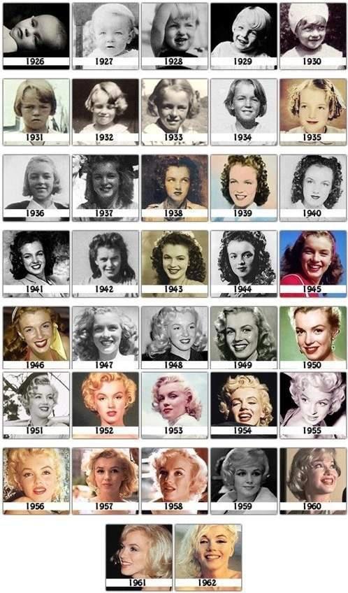 รูปลักษณ์ของมาลิลีน มอนโรทุกปีในชีวิตของเธอ