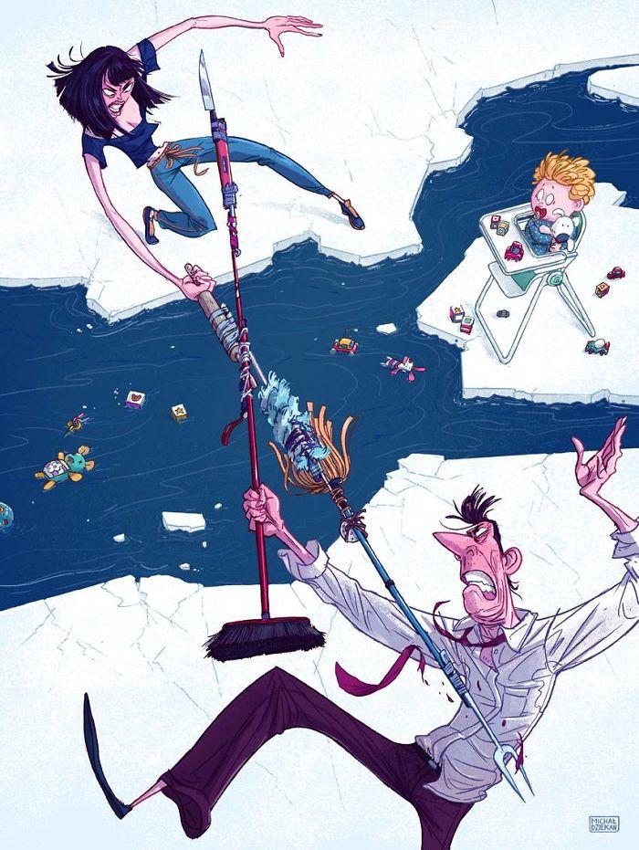 นักเขืยนการ์ตูนชาวโปแลนด์ ที่ชื่อ Michal Dziekan ได้วาดภาพการ์ตูนสะท้อนปัญหาของโลกสมัยใหม่ที่เราสมควรยอมรับ นะครับ.