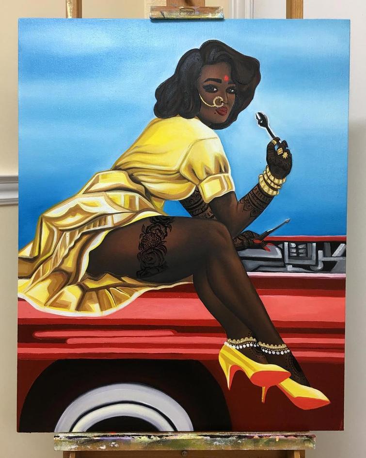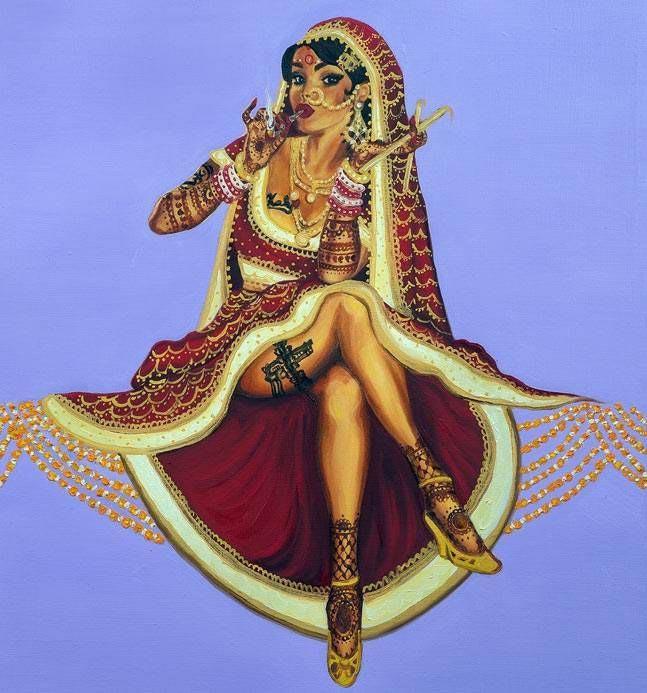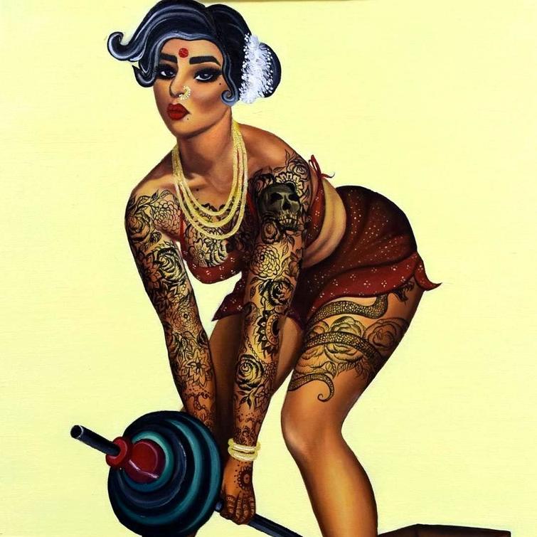 ศีลปีนชาวแคนาดาเชื้อสายอินเดียที่ชื่อ Nimisha Bhanot ได้วาดภาพท้าทายสายตาประชาชน ในรูปแบบ pin-up โดยนางแบบเป็นสาวอินเดีย นะครับ