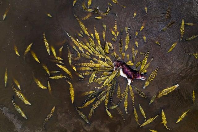 ฝูงจระเข้รุมกินซากฮิปโป้