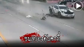 คลิปอุบัติเหตุ รถกระบะชนมอเตอร์ไซค์ บริเวณแยกไฟแดงบ้านไร่ ทางหลวงหมายเลข 340 ต.วังน้ำซับ อ.ศรีประจันต์ จ.สุพรรณบุรี วันที่ 17 มิถุนายน 2563