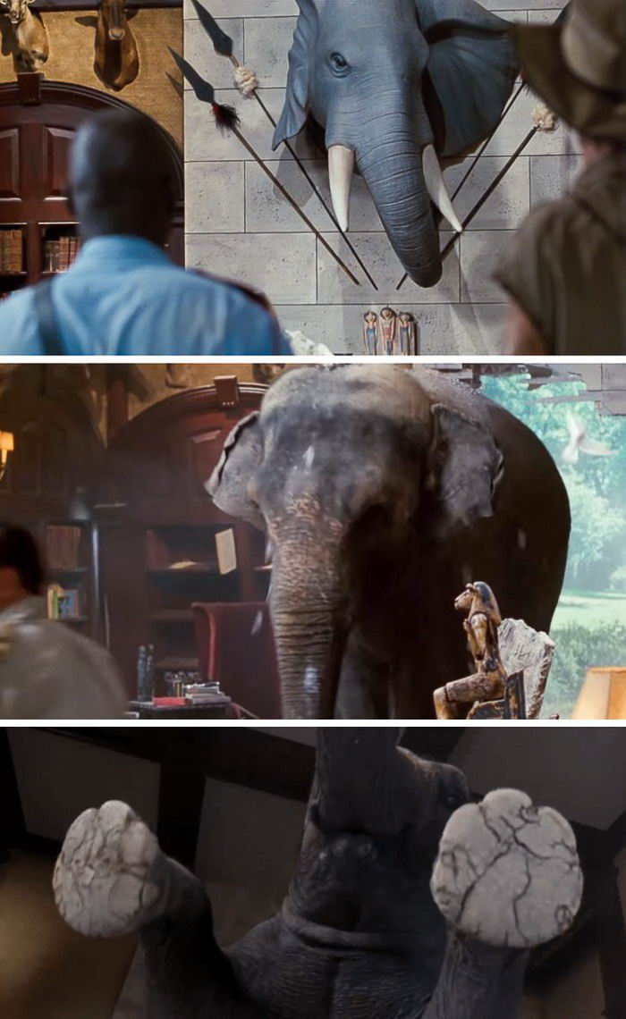 สิ่งที่น่าตลกในฉากนี้ก็คือ มันเป็นฉากที่เกิดขึ้นในแอฟริกาและมีหัวของช้างแอฟริกาบนกำแพง เมื่อกำแพงพังมันกลับมีช้างอินเดียวิ่งออกมา ซึ่งช้างทั้งสองสายพันธุ์แตกต่างกันอย่างมากและอยู่ต่างทวีปกัน แต่เหตุผลที่เป็นเช่นนั้นก็เพราะช้างอินเดียฝึกฝนได้ง่ายกว่า ซึ่งเหมาะกับการถ่ายทำภาพยนตร์