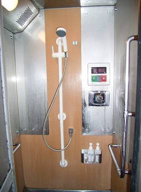 ห้องน้ำบนรถไฟน่าสนใจมาก เพราะคุณต้องใช้การ์ดพิเศษเพื่อแลกกับการอาบน้ำ 6 นาที เมื่อน้ำเริ่มไหลเวลาจะเริ่มนับถอยหลัง มันเป็นความท้าทายเล็กๆ ในการล้างแชมพูและสบู่ออกให้หมด ก่อนที่น้ำจะหยุดไหล