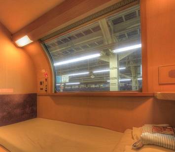 อย่างที่เห็นในภาพห้องพักประเภทนี้จะถูดแบ่งออกเป็นล็อคๆ และมีพื้นที่พอดีสำหรับแต่ละคน มีความยาวเพียงพอที่จะนอนหลับสบาย แถมยังมีหน้าต่างให้ชมวิวด้วย