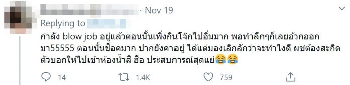 หากพูดถึงเรื่อง “เซ็กส์” สำหรับหลายๆ คนที่เคยผ่านมันมาก่อน จะรู้กันดีว่า “มันไม่ได้ราบรื่น” อย่างที่คิดเอาไว้ บางครั้งมันก็มีเหตุการณ์ต่างๆ ที่ไม่คาดคิดเกิดขึ้น จนบางครั้งก็ทำให้หมดอารมณ์ไปเลยก็มี… ล่าสุดเมื่อสัปดาห์ที่ผ่านมา มีการพูดคุยกันถึงประเด็นนี้กันในโลกออนไลน์ (ทวิตเตอร์) โดยมีผู้ใช้ทวิตเตอร์รายหนึ่งทวีตข้อความว่า “จงรีวิวเซ็กส์ที่ตลกที่สุด”