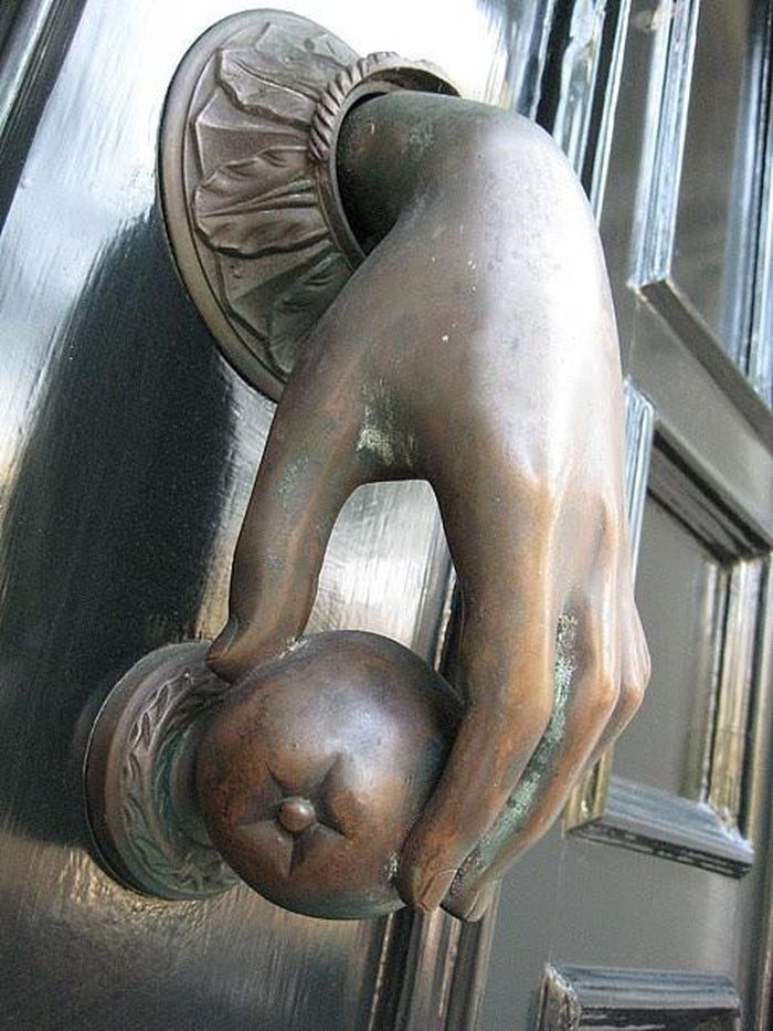 ที่เคาะประตูแปลกๆเป็นรูปมือผู้หญิงถือส้ม