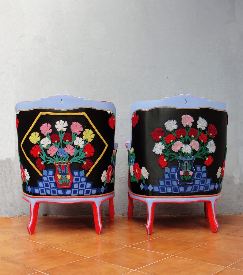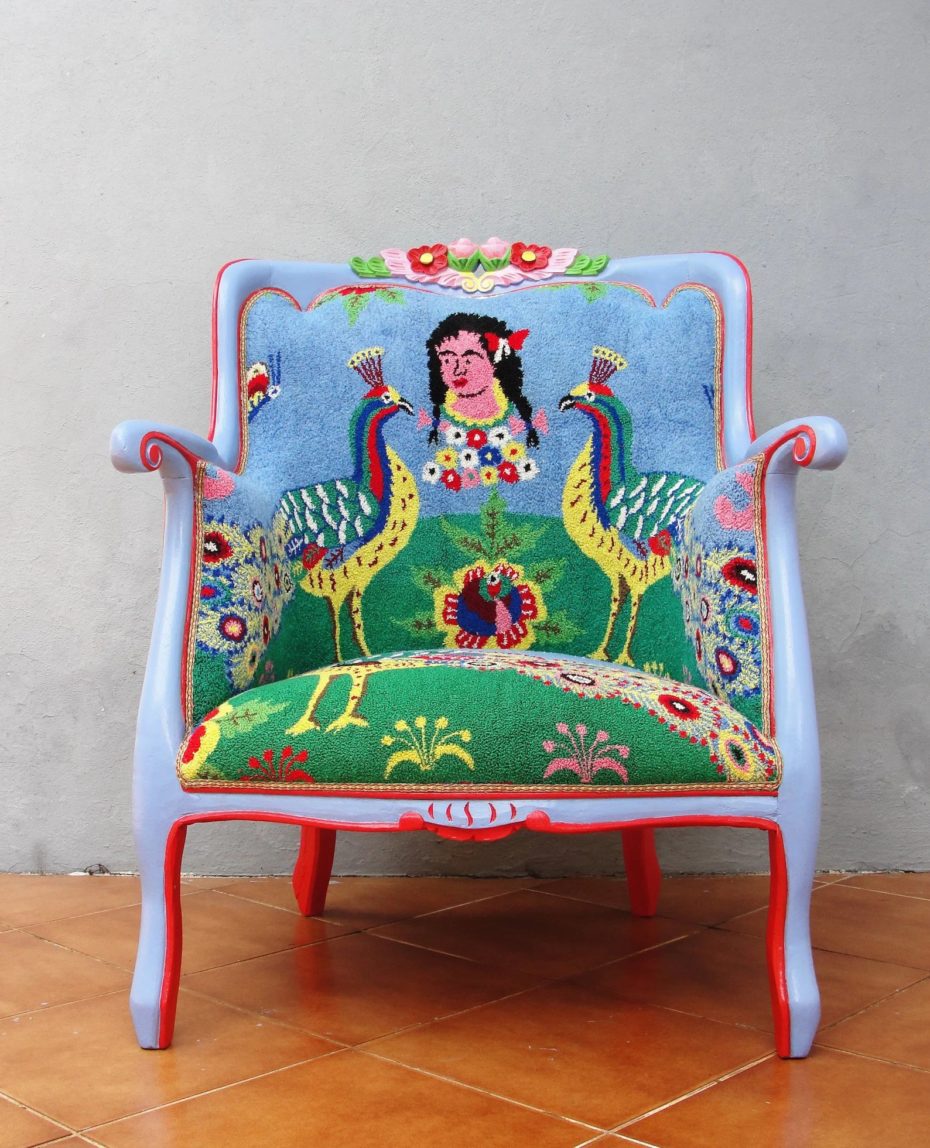 เก้าอี้นวมที่ใช้มือปักทั้งตัวในยุคปี1950.