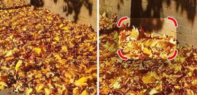 สุนัขจิ้งจอกนอนบนกองใบไม้.