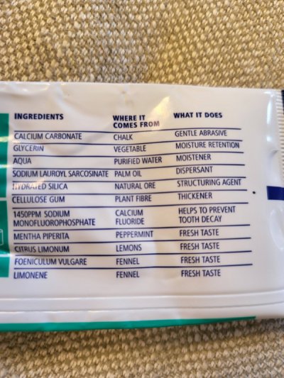 ยาสีฟันของฉันบอกส่วนผสมมาจากไหนและทำอะไร.
