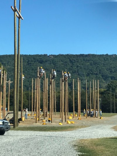 ฉันขับรถผ่านโรงเรียนช่างซ่อมบำรุงสายโทรศัพท์ใน
