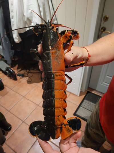 กุ้งมังกรสีส้มดำที่พ่อจับได้.