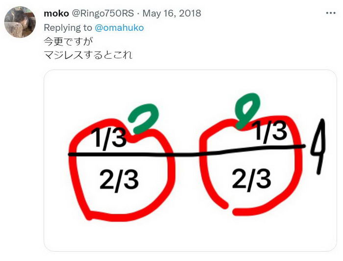 เรื่องราวนี้เริ่มต้นจากผู้ใช้ทวิตเตอร์นามว่า @omahuko ได้ภาพแอปเปิ้ล 2 ผล กับมีด 1 เล่ม พร้อมกับแคปชัน