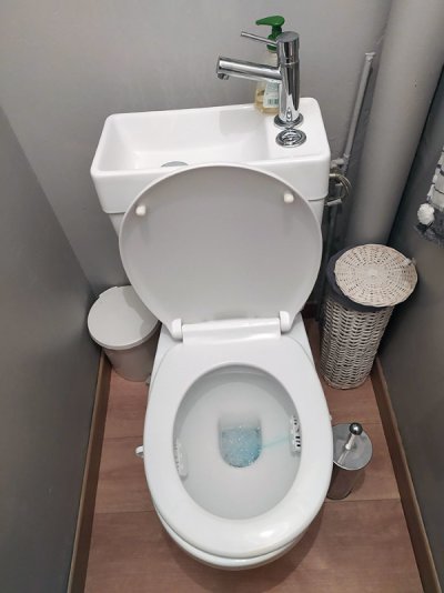 อ่างล้างหน้าที่เบลเยียมมีปุ่มsos ไว้สำหรับคนหกล้มในห้องน้ำที่ช่วยตัวเองไม่ได้.