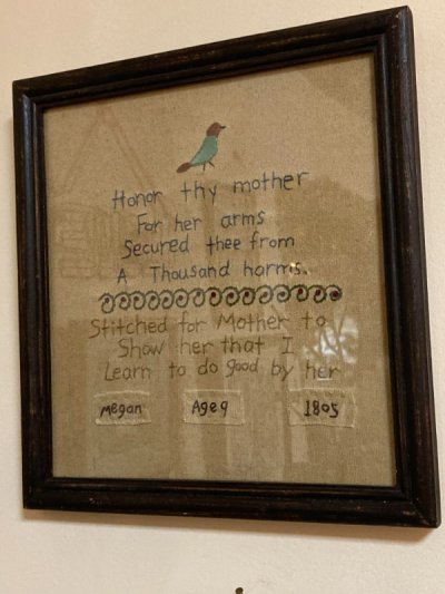 งานปักครอสติชที่เด็กมอบให้กับคุณแม่ในปี 1805 พบในร้านขายของเก่า.