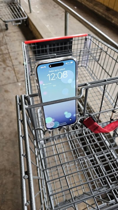 ที่วางมือถือบนรถเข็นในห้าง.