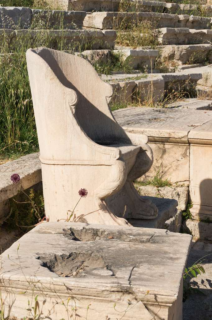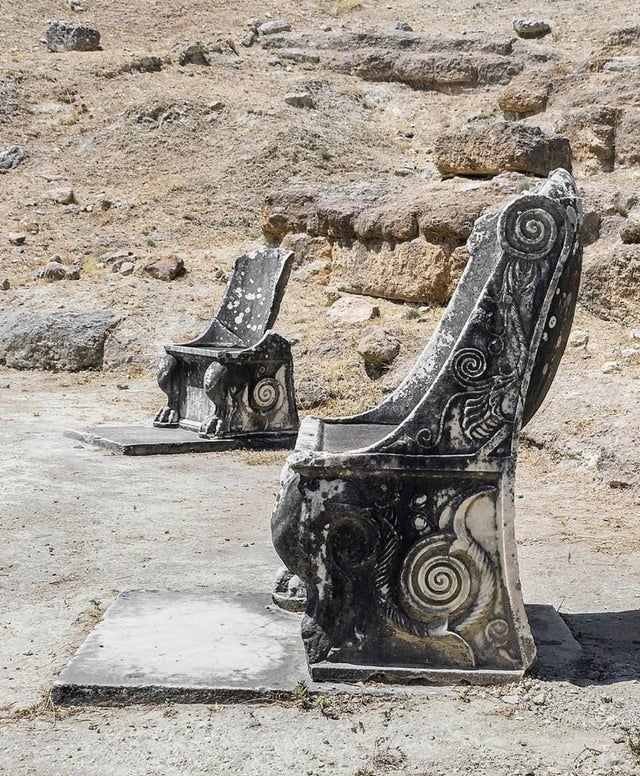 2. ที่นั่งแถวหน้าหินอ่อนที่โรงละครกรีกโบราณแห่ง โอโรโพส,