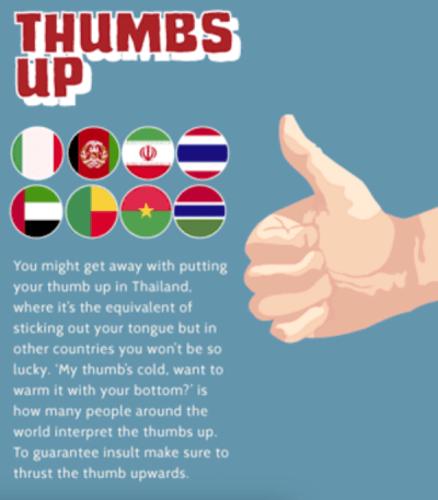 ในครั้งต่อไปที่คุณเดินทาง" คุณอาจทำให้ใครบางคนไม่พอใจโดยไม่ได้ตั้งใจ" ด้วยท่าทางมือที่ไม่เป็นอันตรายในบ้านเกิดของคุณ ลองดูด้านล่างเพื่อที่คุณจะไม่ได้ทำให้คนผิดขุ่นเคือง.