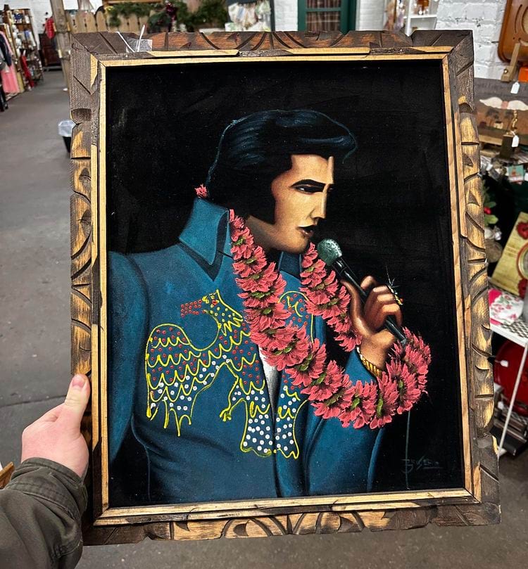 1. ภาพวาดสีน้ำมันบนผ้ากำมะหยี่" Crying Elvis"
