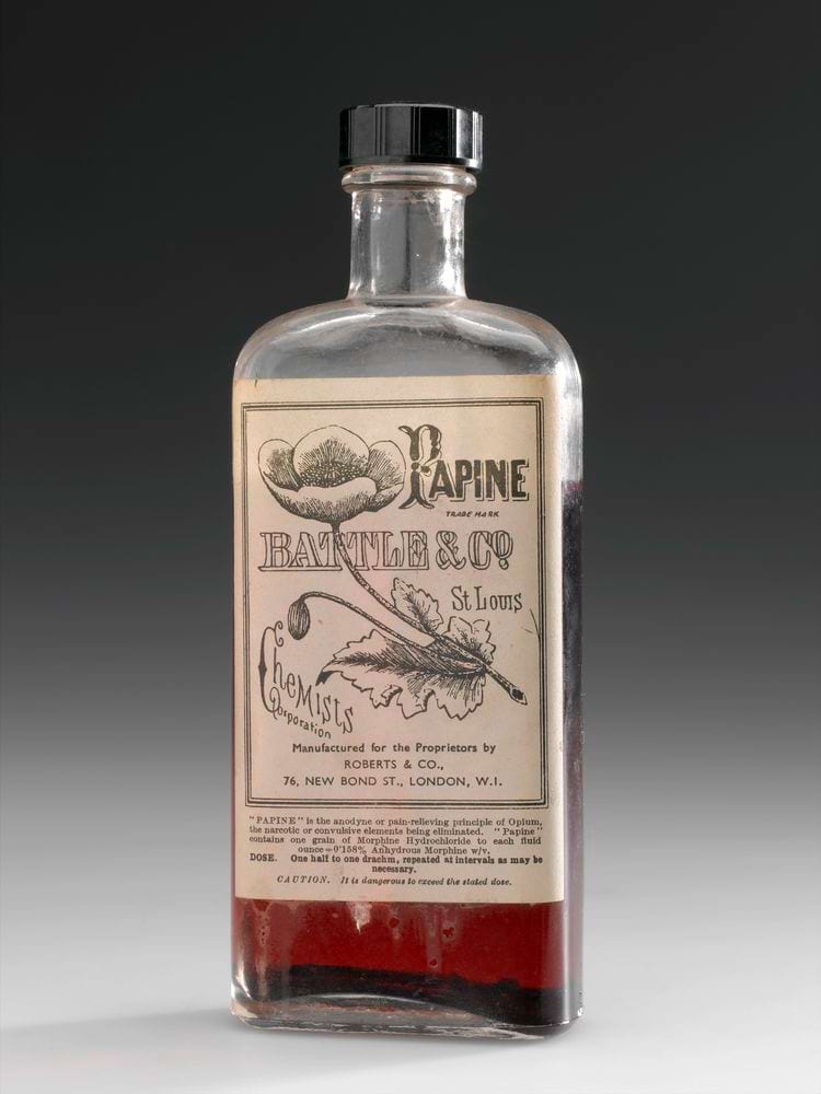 8. Bottle of Papin ยาอมแก้ปวดจากฝิ่น สหราชอาณาจักร พ.ศ 2433-2463.
